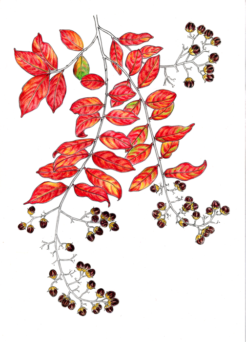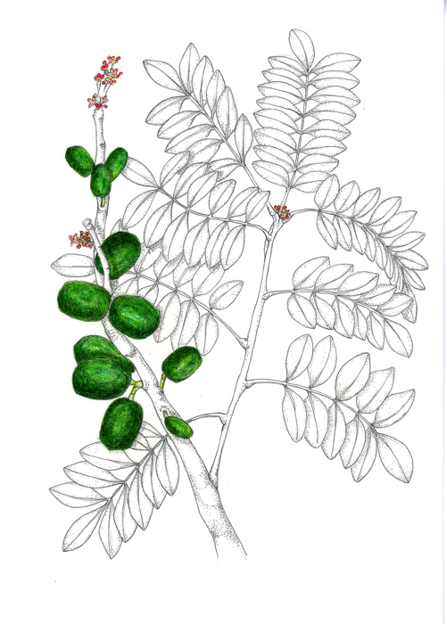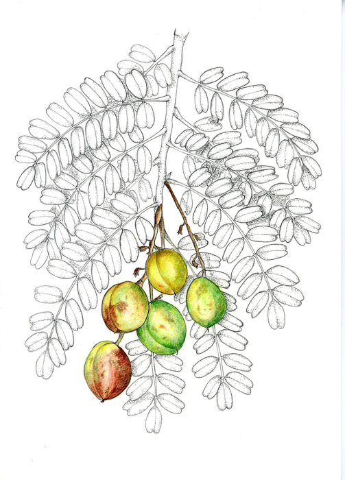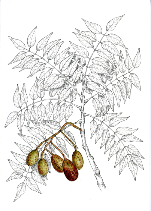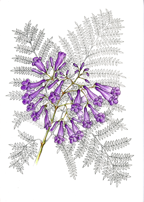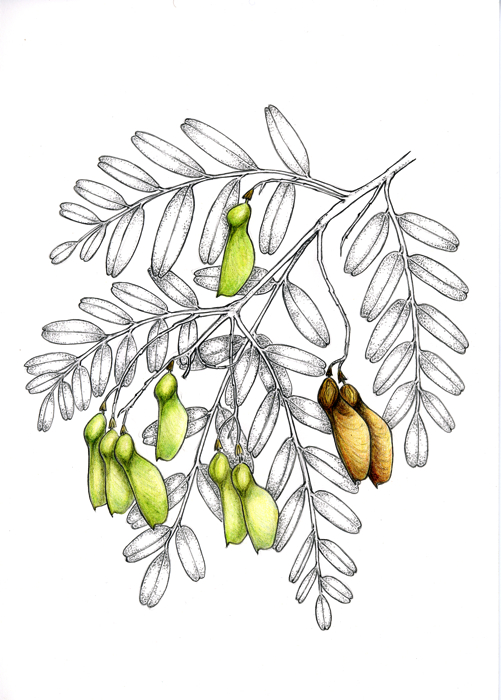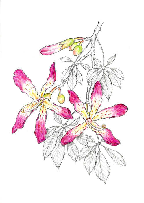 Láminas botánicas de especies arbóreas presentes en los jardines y parques de Sevilla, capital de Andalucía. 30X21 cm., lápices acuarelables y grafito.